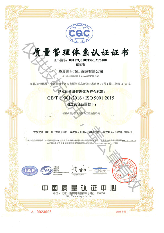 華夏國際項目管理有限公司獲評西安市2..